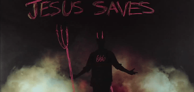 Otra cruz + mensajes invertidos como: «Mata a los pobres», «Ama al diablo oscuro» y otras cosas que no preferimos no escribir.