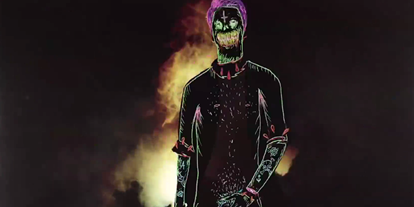 Convertido en un monstruo de cuernos con el símbolo Illuminati en la parte inferior derecha.