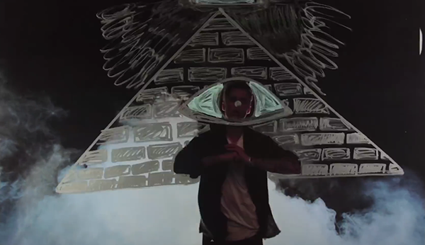 Además de las muchas imágenes satánicas, clásica imágenes Illuminati aparecen en todo el video. La pirámide y el ojo que todo lo ve hacen numerosas apariciones.